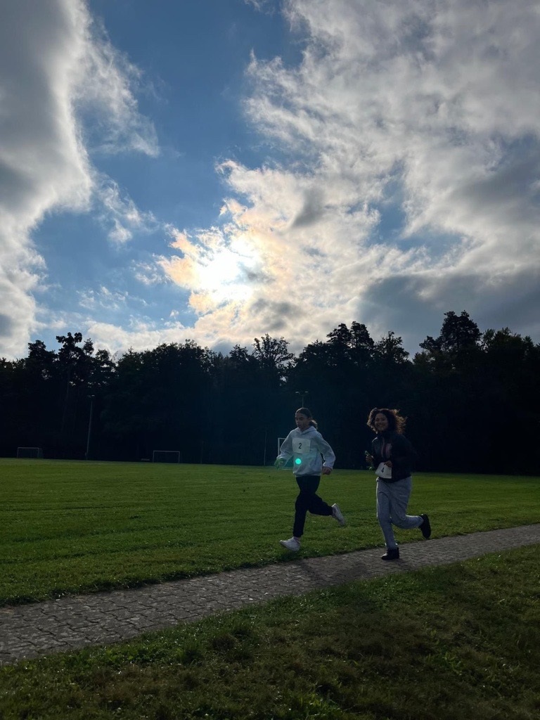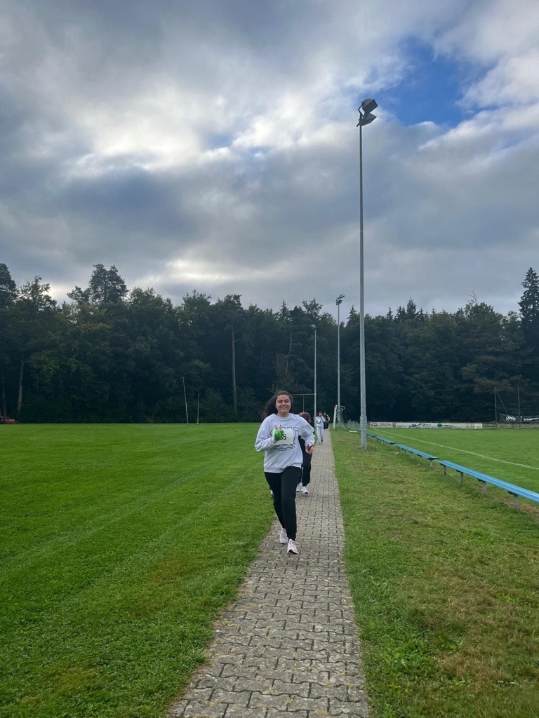 Dann ging es schon los. Der Ablauf war klar: Eine Person des Teams begann zu laufen, während die andere wartete, um danach selbst die Strecke zu absolvieren. Jede*r rannte drei Runden und zusammen ergab das sechs. Schüler*innen, die wegen kleineren Verletzungen nicht teilnehmen konnten, supporteten die Läufer*innen aktiv oder schrieben sich die Laufzeit auf. Später kamen die Jungs und für sie gab es denselben Ablauf.
