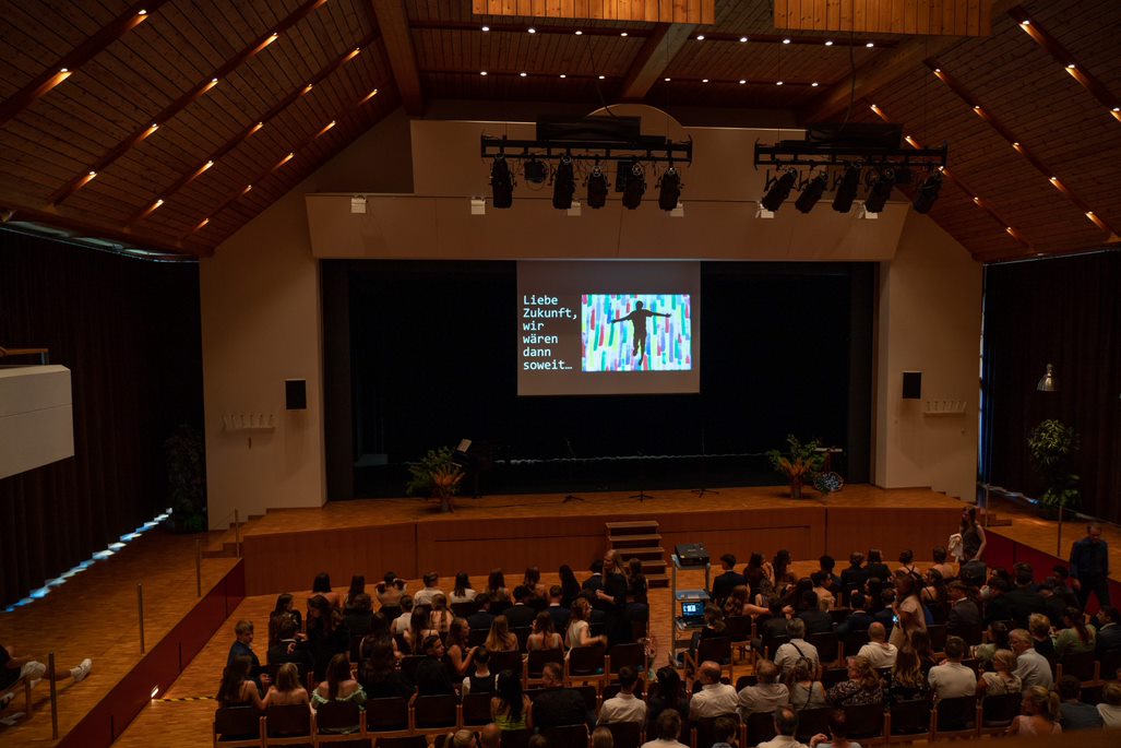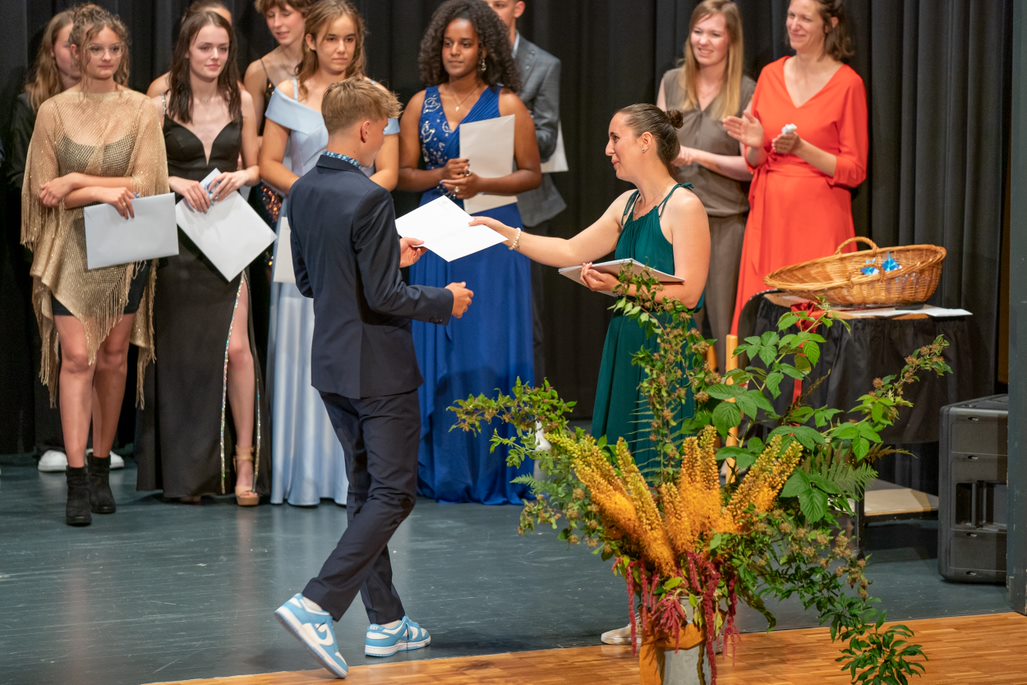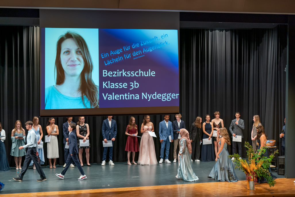 Bei schönstem Wetter wurden die austretenden Schüler und Schülerinnen der Abschussklassen unter dem Motto "Liebe Zukunft, wir wären dann soweit..." verabschiedet. Nachdem die Feier die letzten zwei Jahre nur in einem kleinen Format stattfand, waren dieses Jahr wieder alle zusammen. Alle Schüler und Schülerinnen haben sich herausgeputzt und nahmen voller Stolz ihre Abschlusszeugnisse auf der Bühne in Empfang. Umrahmt wurde die Feier von einer Rede des Schulleiters Patrik Brack, einem Lied der ersten Sekundarklasse, sowie einem Lied, gesungen und gespielt von Tahina Hoffmann. Als Abschluss gab es endlich wieder eine kleinen Apéro, der von der zweiten Klasse der Sportschule serviert wurde. Wir wünschen allen Austretenden alles Gute für die Zukunft.