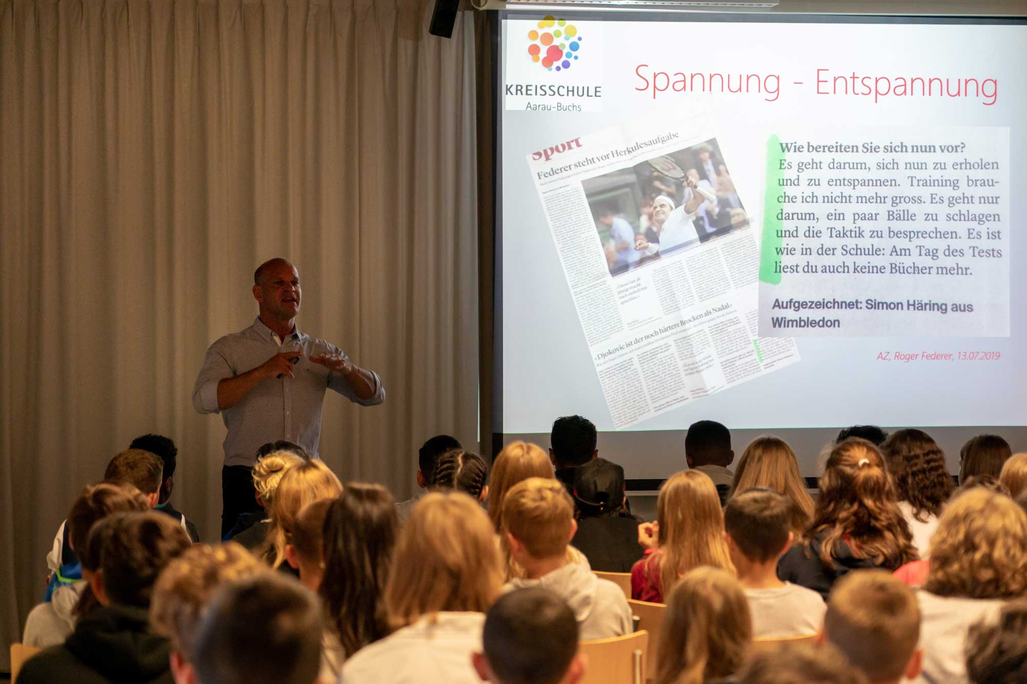 Patrik Brack gelang es, die jungen Menschen mit einer ausgewogenen Mischung aus Humor und Ernsthaftigkeit auf das kommende Schuljahr einzustimmen. «Ja, wir erwarten von euch, dass ihr Einsatz zeigt und versucht, eure beste Leistung zu erbringen» fuhr er in seiner Begrüssungsrede fort. «Aber wir setzen uns auch dafür ein, dass ihr immer wieder die Möglichkeit habt, euch zu entspannen und wieder neue Kräfte zu sammeln». «Anspannung und Entspannung», fuhr Brack fort, «das ist das Geheimnis eines optimalen Leistungszustands.» Das wissen auch die Lehrpersonen der Suhrenmatte und sie werden die Lernenden mit Einfühlungsvermögen und pädagogischem Geschick durch das Schuljahr 2019/20 begleiten.