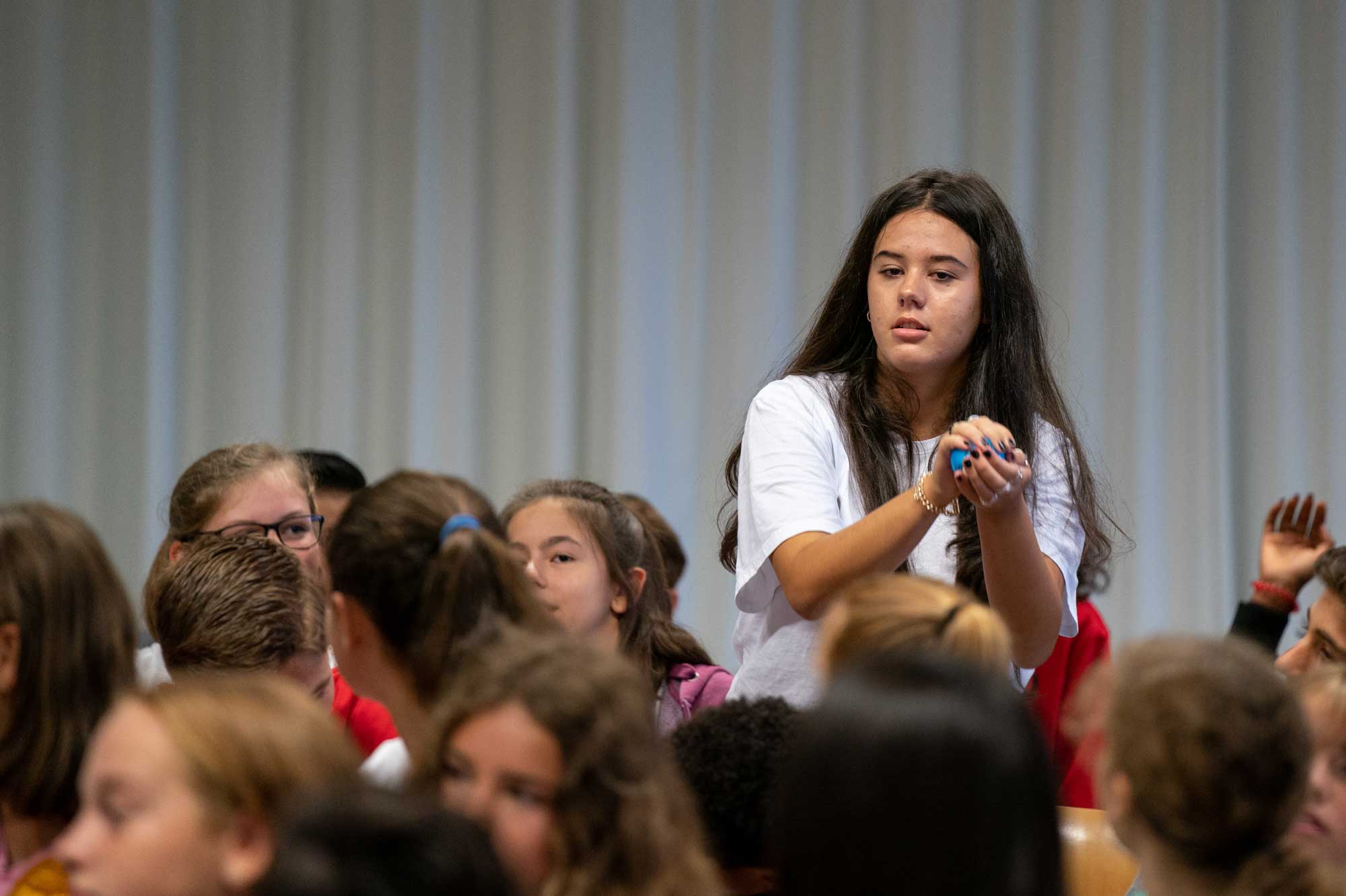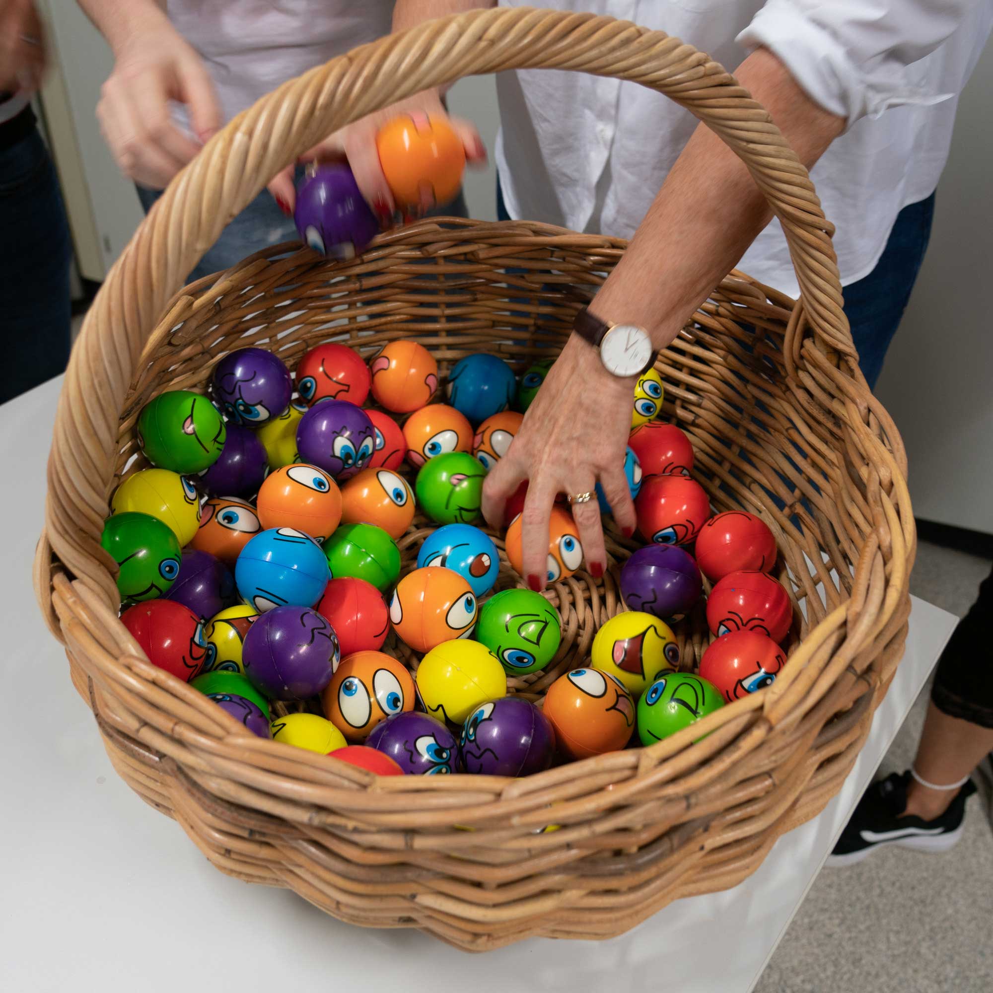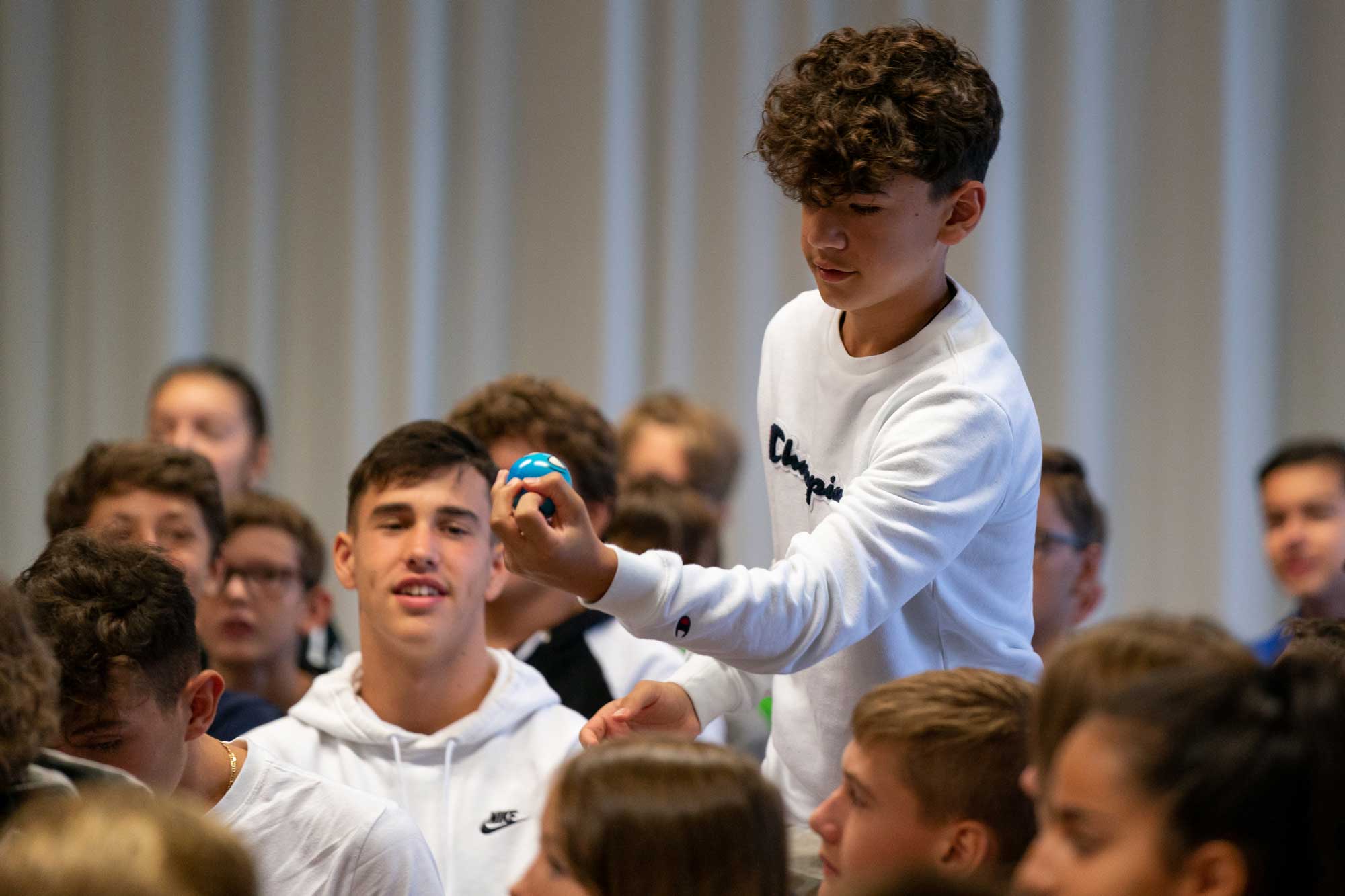 Als kleines Begrüssungsgeschenk erhielten die Jugendlichen dann auch passend zum Thema einen persönlichen «Anti-Stress Ball». Die Klassenlehrpersonen schlüpften in die Rolle der Werfer und die Schüler/innen hatten alle Hände voll zu tun, die Bälle zu fangen. Für eine gute Stimmung war gesorgt und ein mit Spannung erwartetes Schuljahr hat begonnen.