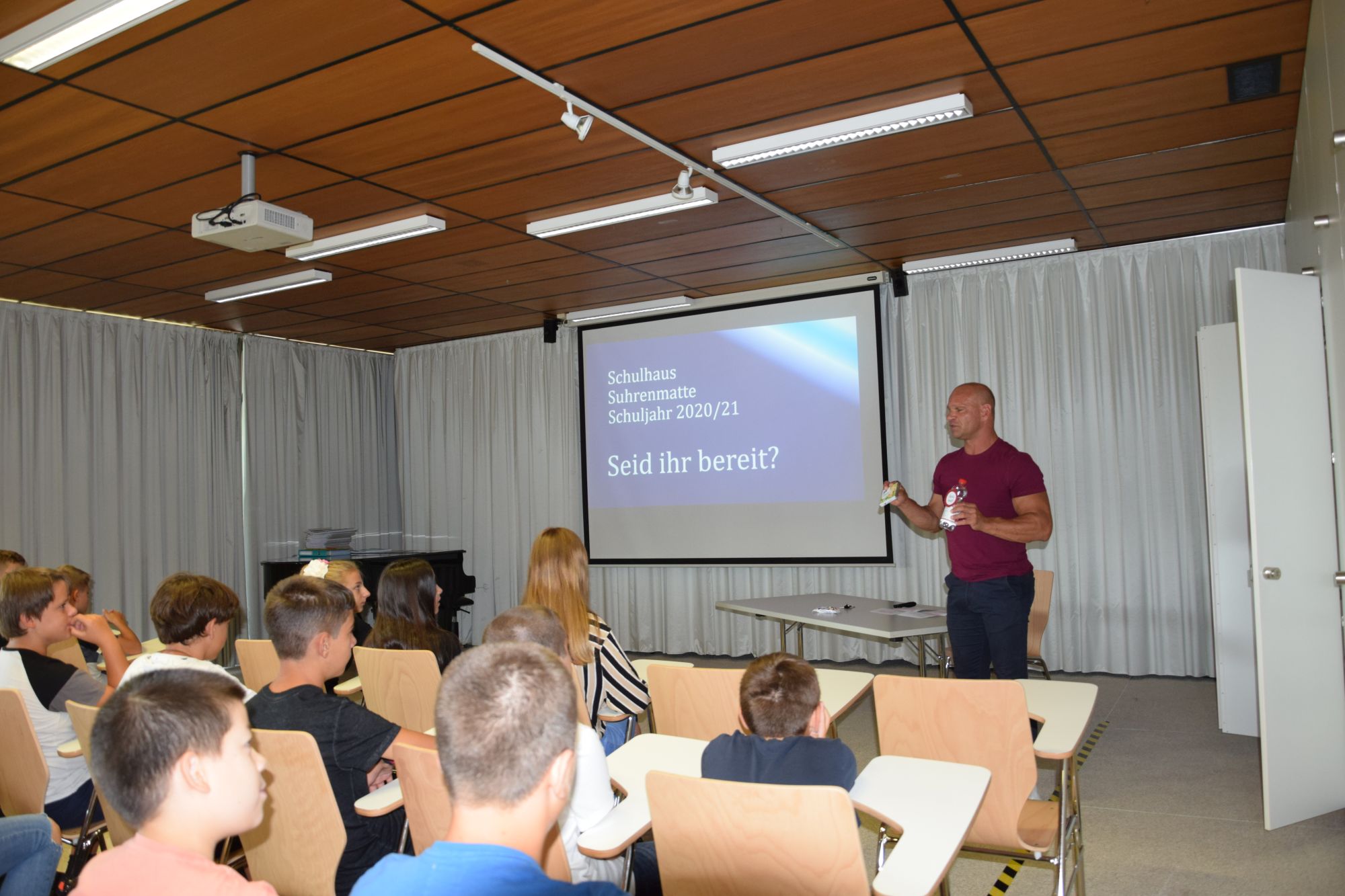 Beinahe 100 Schülerinnen und Schüler strömten am 10. August 2020 zum ersten Mal in die Aula des Schulhauses Suhrenmatte. 100 Schülerinnen und Schüler, die ihren schulischen Weg nun in der Oberstufe fortsetzen. Sie wurden unter dem Motto "Bist du bereit?" mit einer kleinen Feier herzlich willkommen geheissen.
