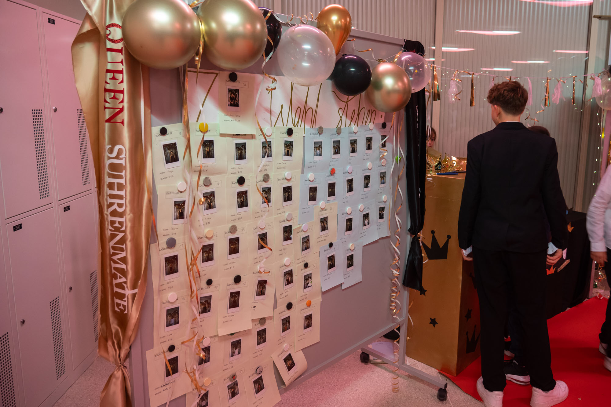 Vorfreude ist ja bekanntlich die schönste Freude und deshalb begannen die Vorbereitungen für den diesjährigen Schülerball schon Wochen im Voraus! Outfits wurden besprochen, Ballkleider gesucht, Spiele organisiert, Plakate gemalt und Kronleuchter gebastelt. Am Donnerstagabend war es endlich soweit und das Schulhaus Suhrenmatte erstrahlte in schönstem Glanz. Es gab wiederum tolle Spiele, Rosenkavalier, Disco und natürlich feine Verpflegungsmöglichkeiten. Viel Aufregung gab es um die Wahl der Suhrenmatte Queen und des Suhrenmatte Kings. Am Stand der B1a konnte man sich fotografieren und zur Wahl stellen lassen. Mittels Wahlzettel durften alle SchülerInnen abstimmen und das Gewinnerpärchen wurde am Schluss des Abends in der Disco gekürt und standesgemäss mit Krone, Diadem und Schärpe ausgestattet!