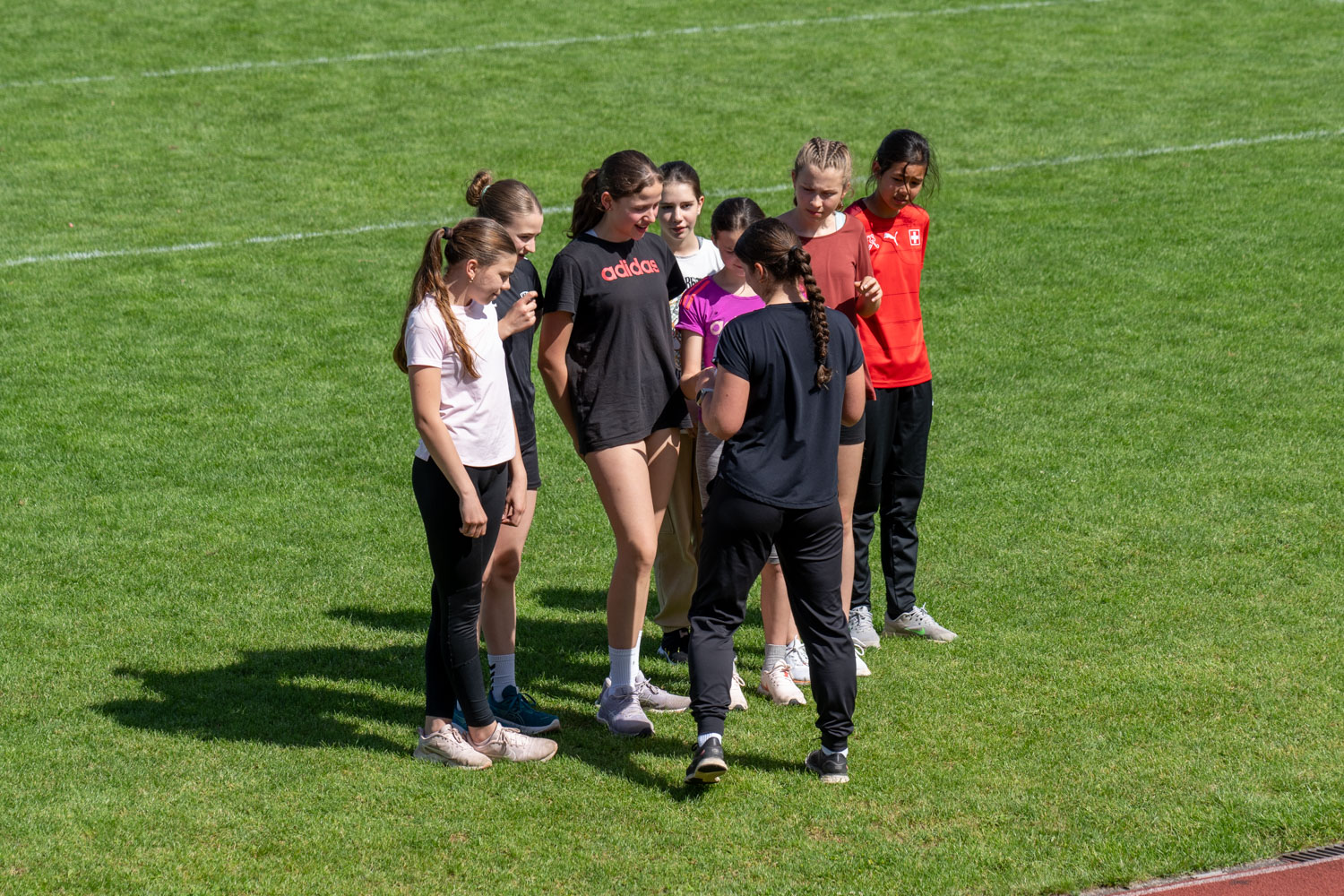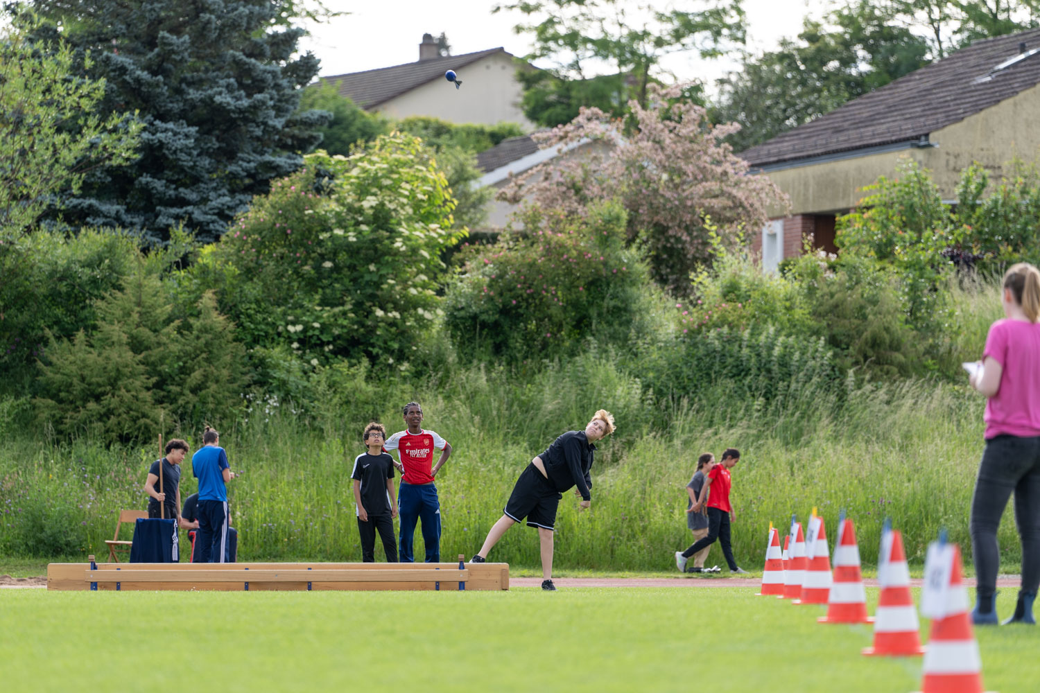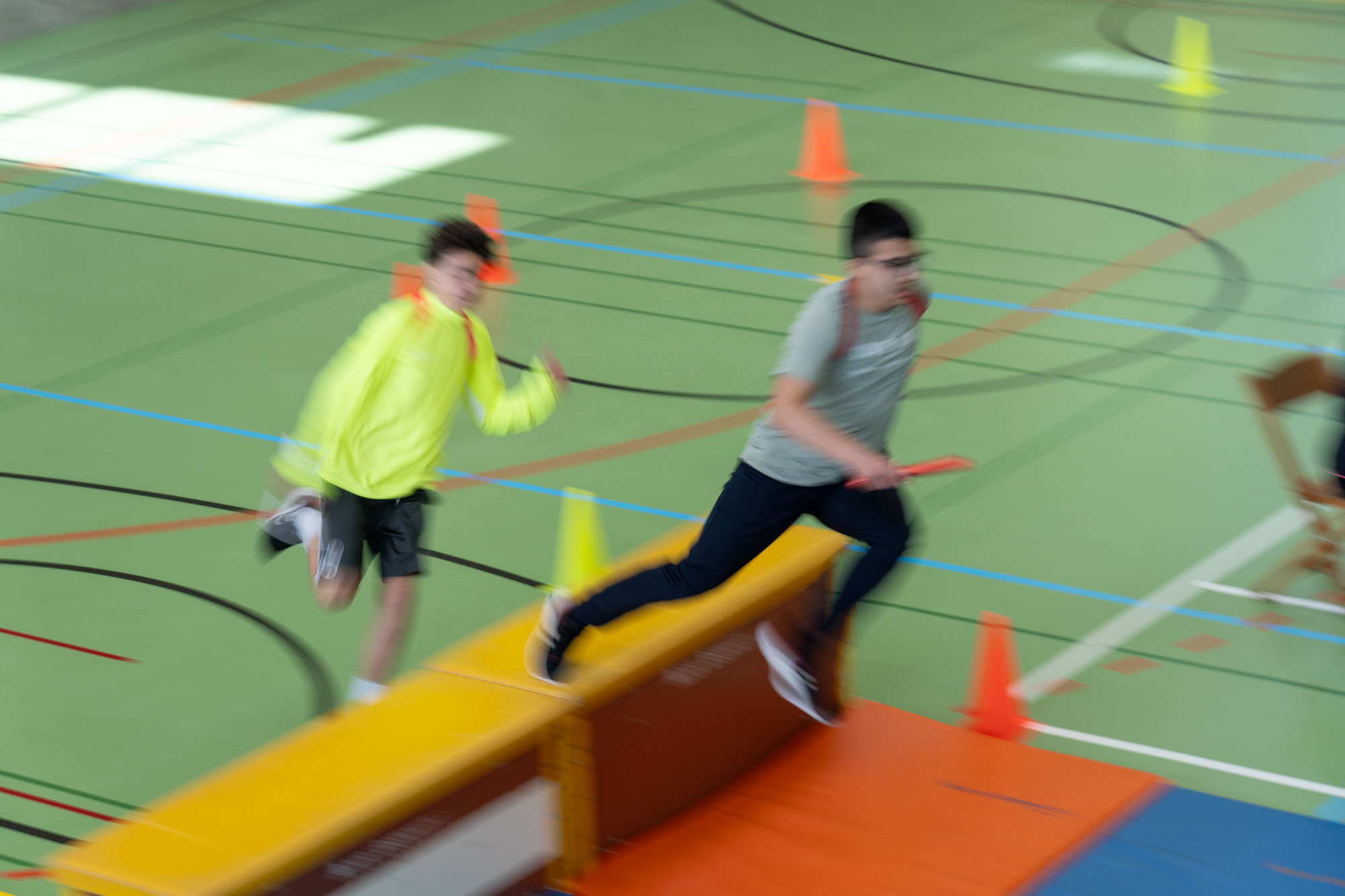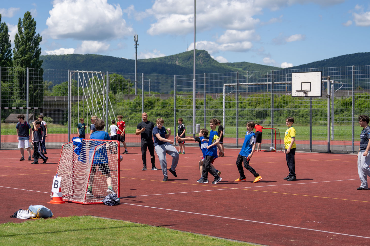 Der Vormittag stand im Zeichen des leichtathletischen Gruppenmehrkampfs. Die Schüler/innen traten in Teams in verschiedenen Disziplinen gegeneinander an. Die Pendelstafette sorgte für spannende Rennen. Beim Zonenweitsprung stellten die Teilnehmer/innen ihre Sprungkraft unter Beweis. Der Hindernisparcours forderte Geschicklichkeit, Koordination und Ausdauer, während der Wurfraketenwettlauf den Teilnehmer/innen möglichst weite und gezielte Würfe, Reaktionsschnelligkeit und Stehvermögen abverlangte.