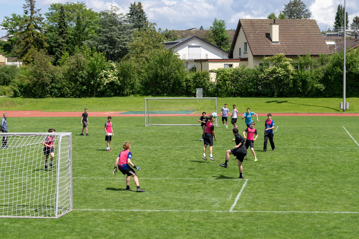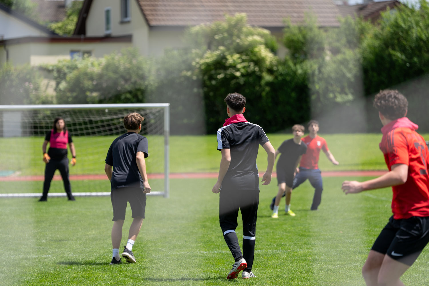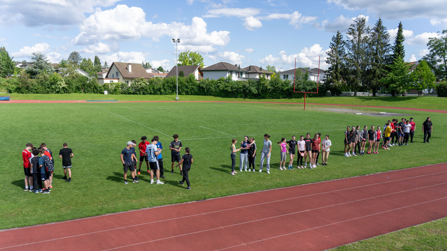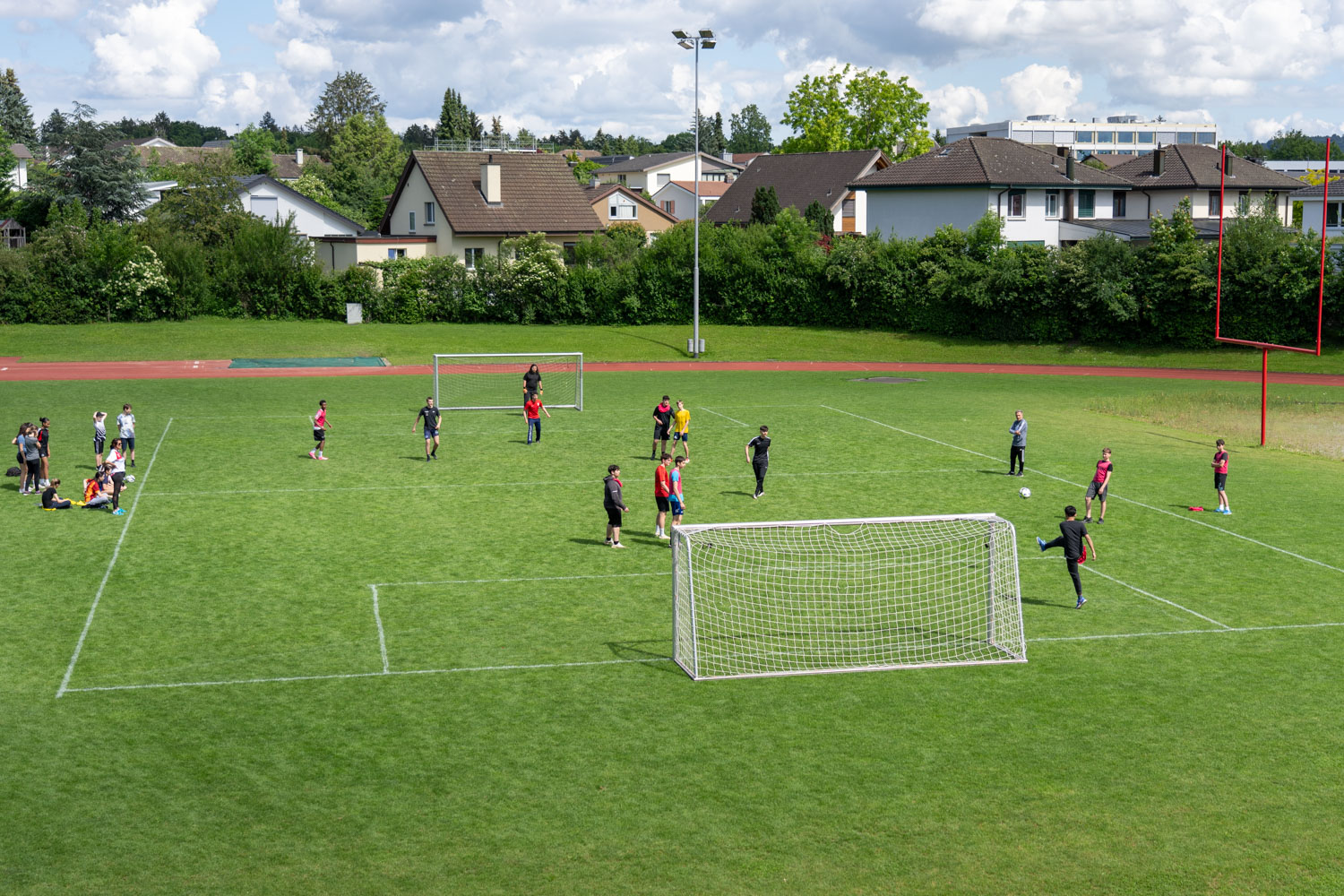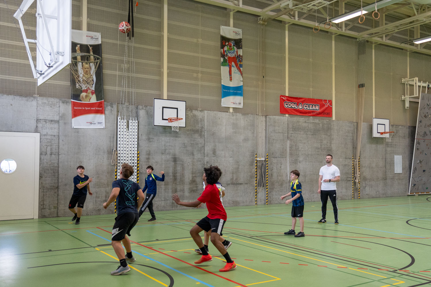 Nach der Mittagspause, in der die Schüler/innen sich mit Sandwiches, Nussgipfeln und einem Getränk verpflegen konnten, fanden gleichzeitig Softball-, Street- und Fussballspiele statt.