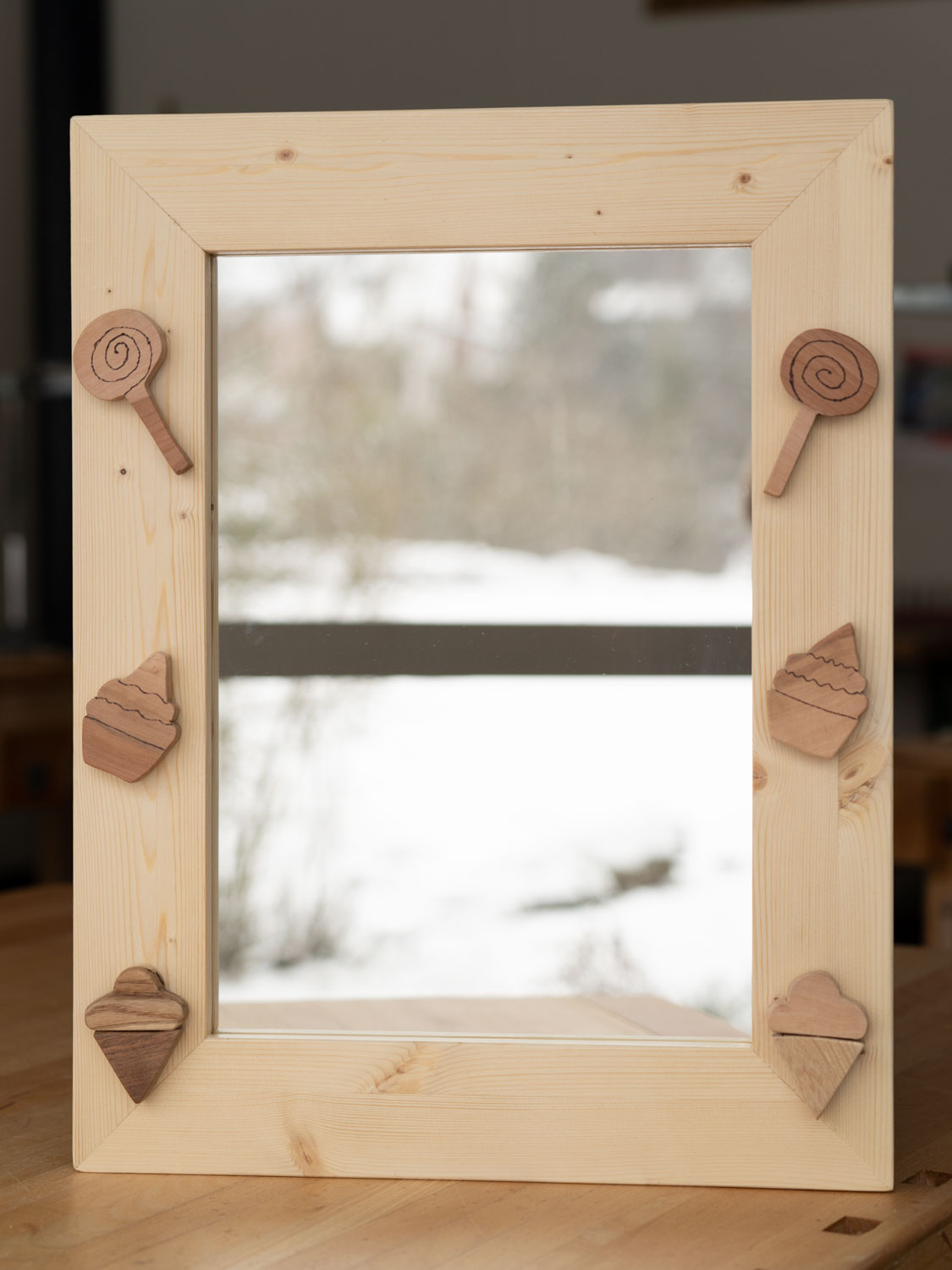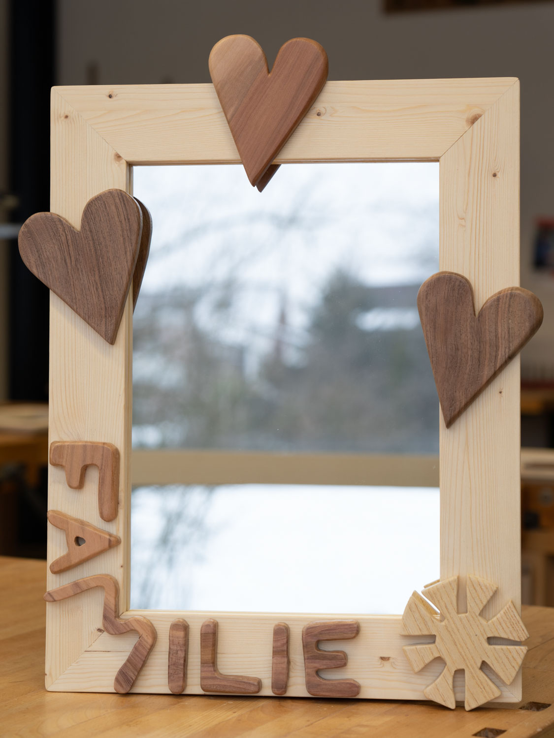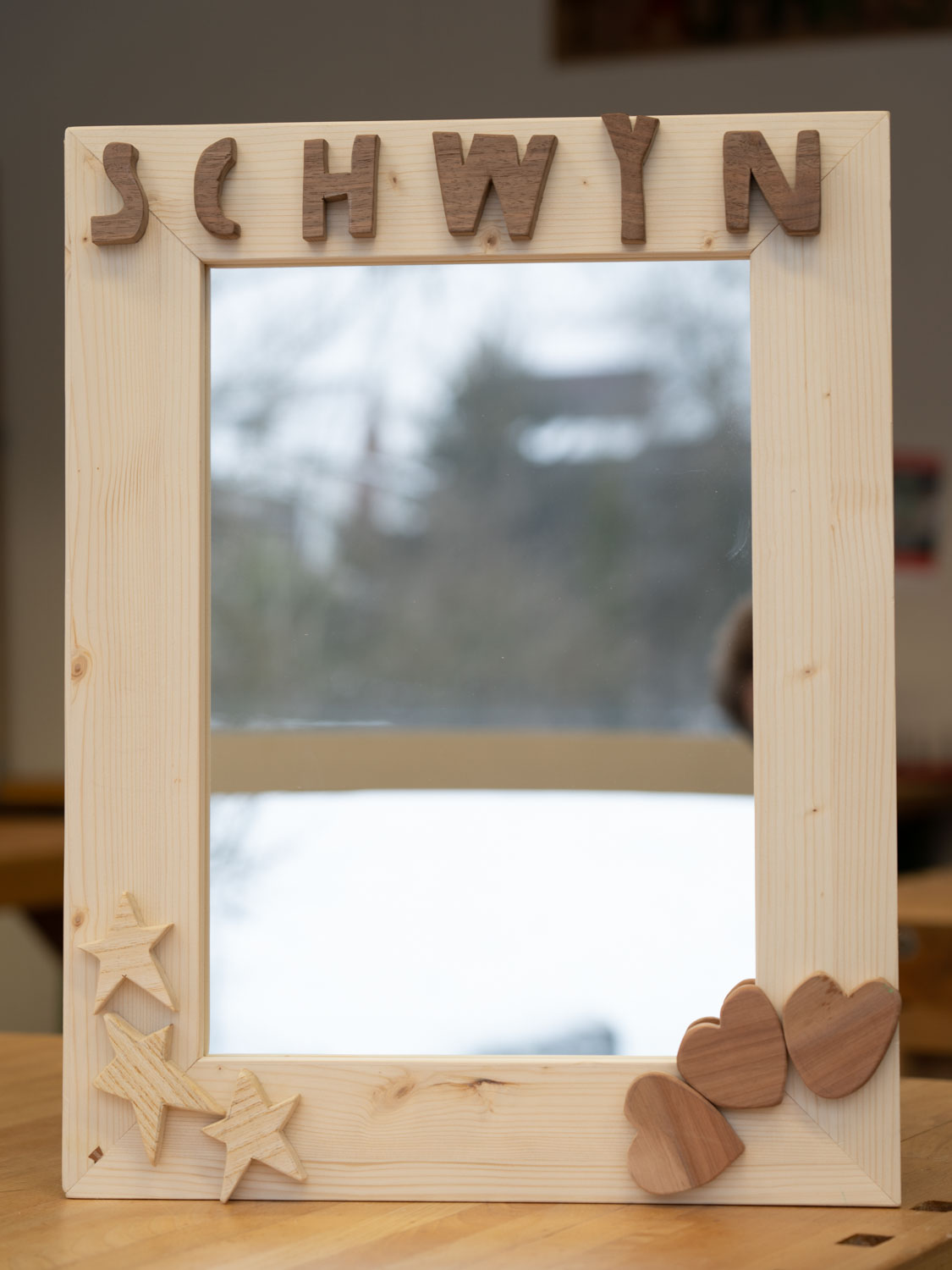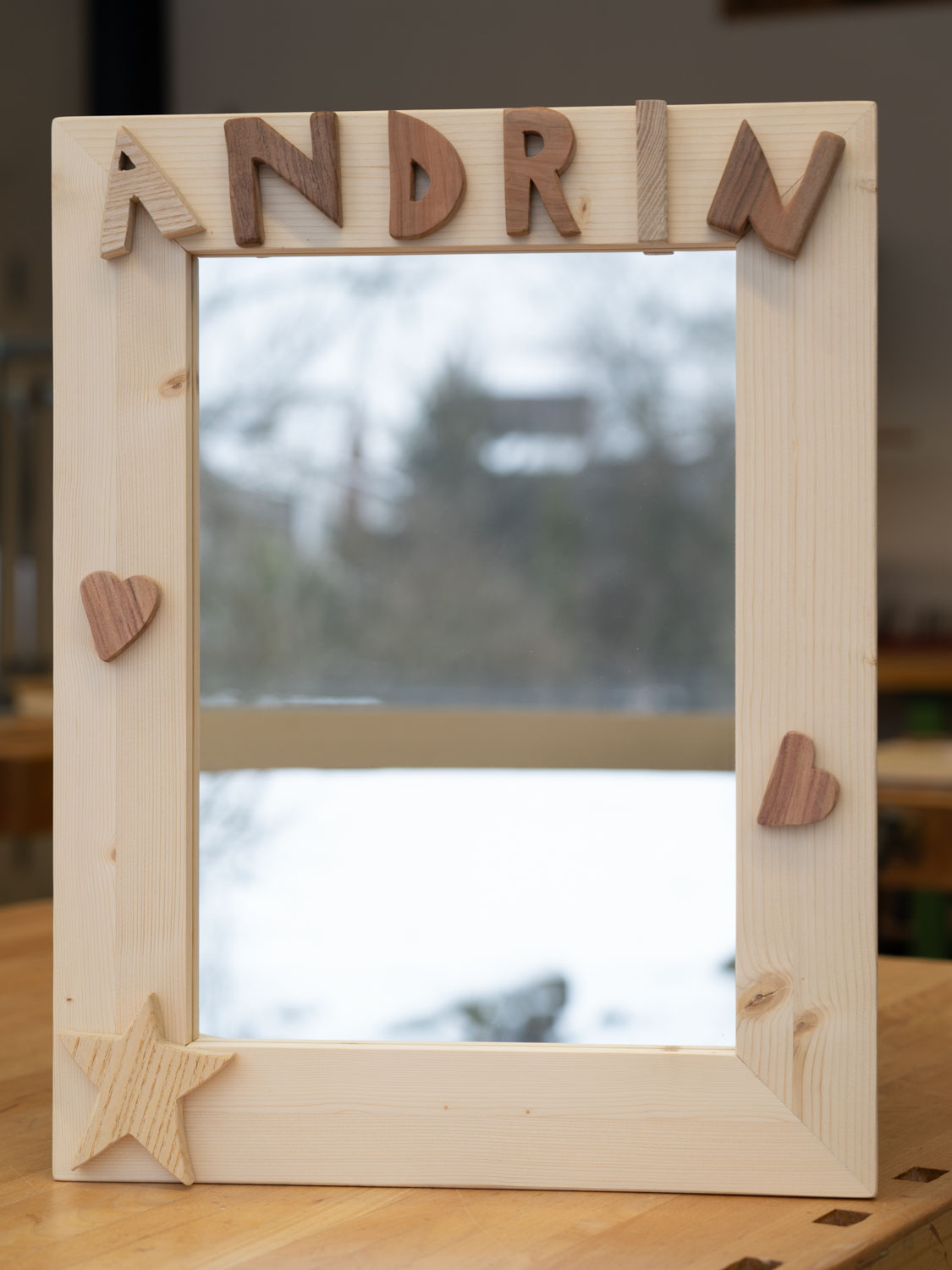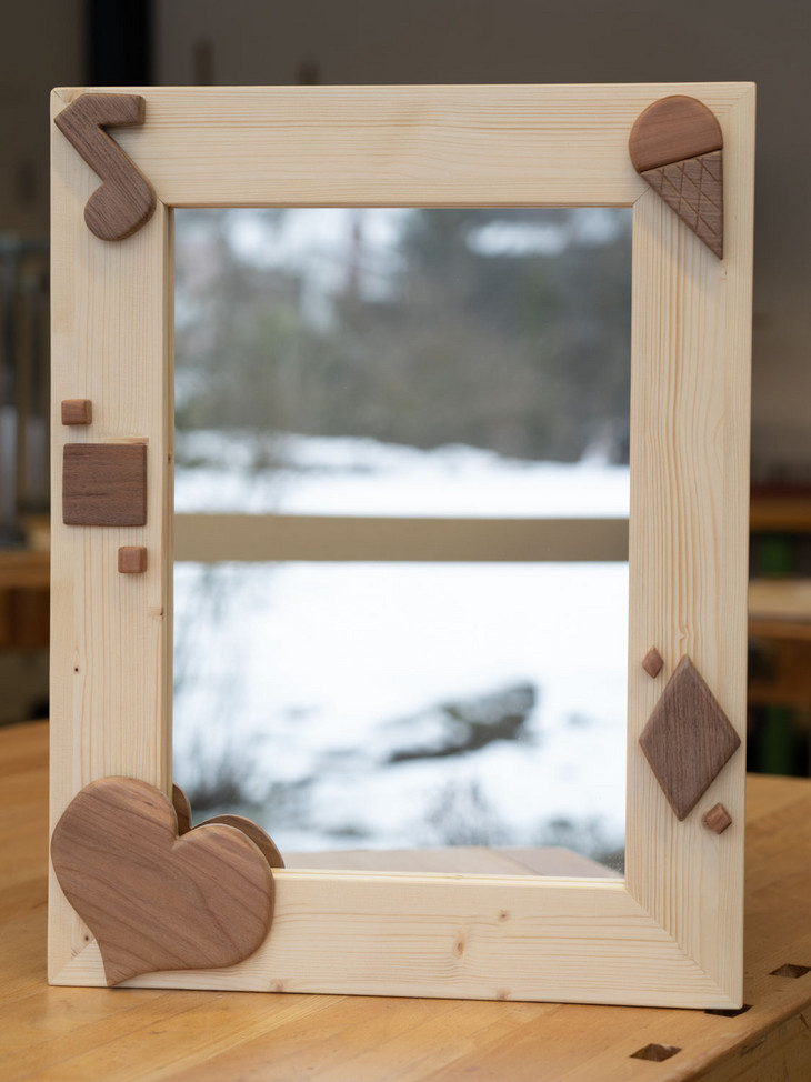 Auch die Schülerinnen und Schüler der Klassen Bez 1a/b haben ihre Arbeiten im Technischen Gestalten bei Herrn Loosli fertiggestellt. Es enstanden ebenfalls wunderschöne Bilder- und Spiegelrahmen mit selber entworfenen Dekorationen aus verschiedenen Hölzern.