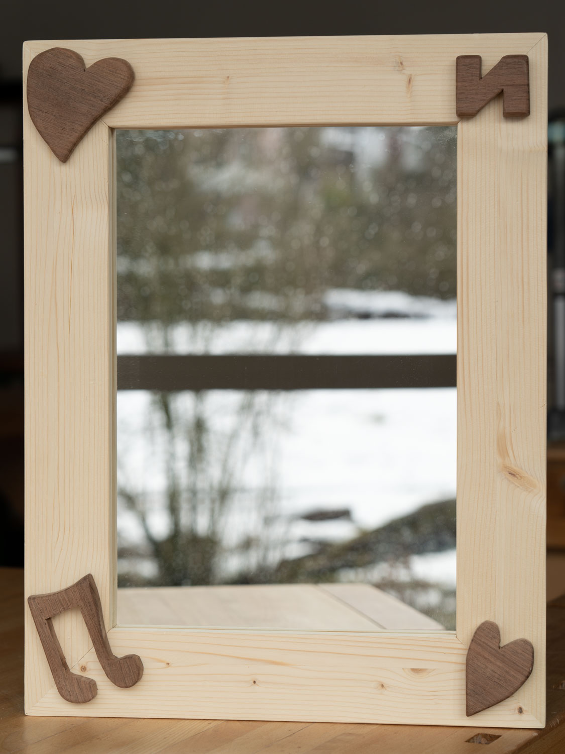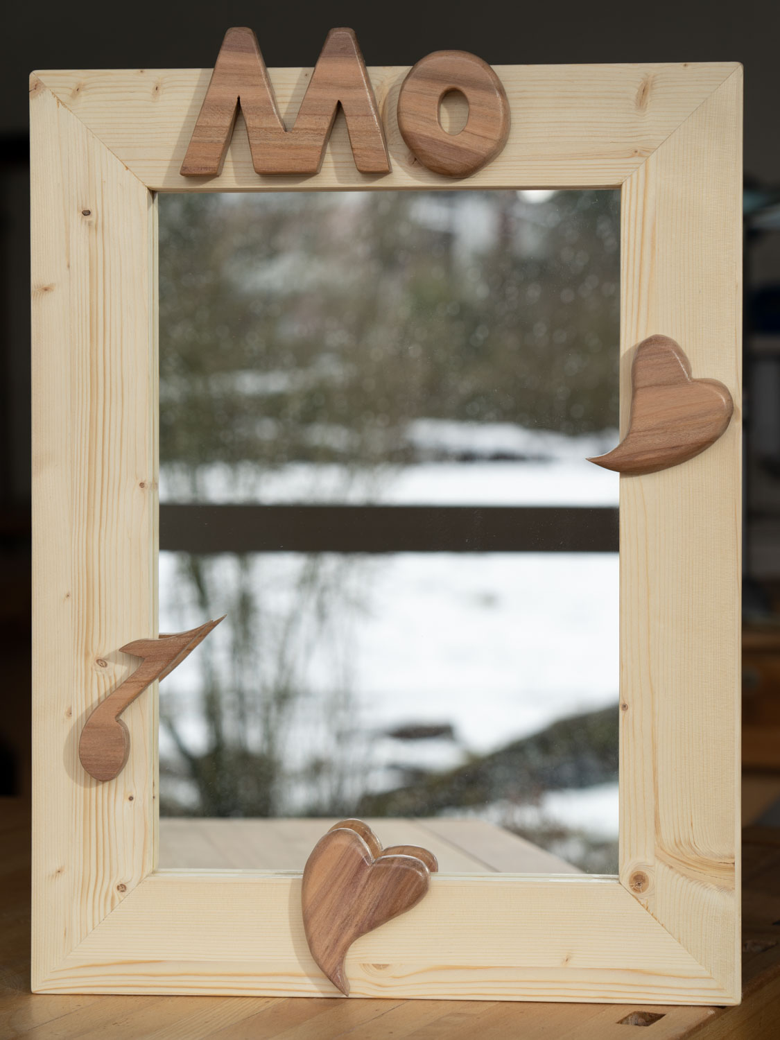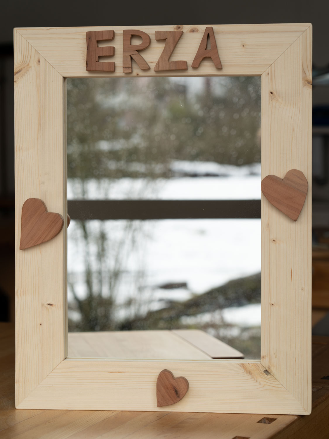 Die Schülerinnen und Schüler der Sek 1a haben ihre Arbeiten im Technischen Gestalten vollendet. Entstanden sind Bilder- und Spiegelrahmen mit selber entworfenen Deko-Objekten. Den Rahmen fertigten sie aus Fichtenholz. Die Dekorationen sind aus Laubhölzern wie Nussbaum, Apfelbaum, Zwetschgenbaum, Olivenbaum und Esche hergestellt. Stolz trugen alle Schüler und Schülerinnen vor den Sportferien ihre Arbeiten nach Haus.