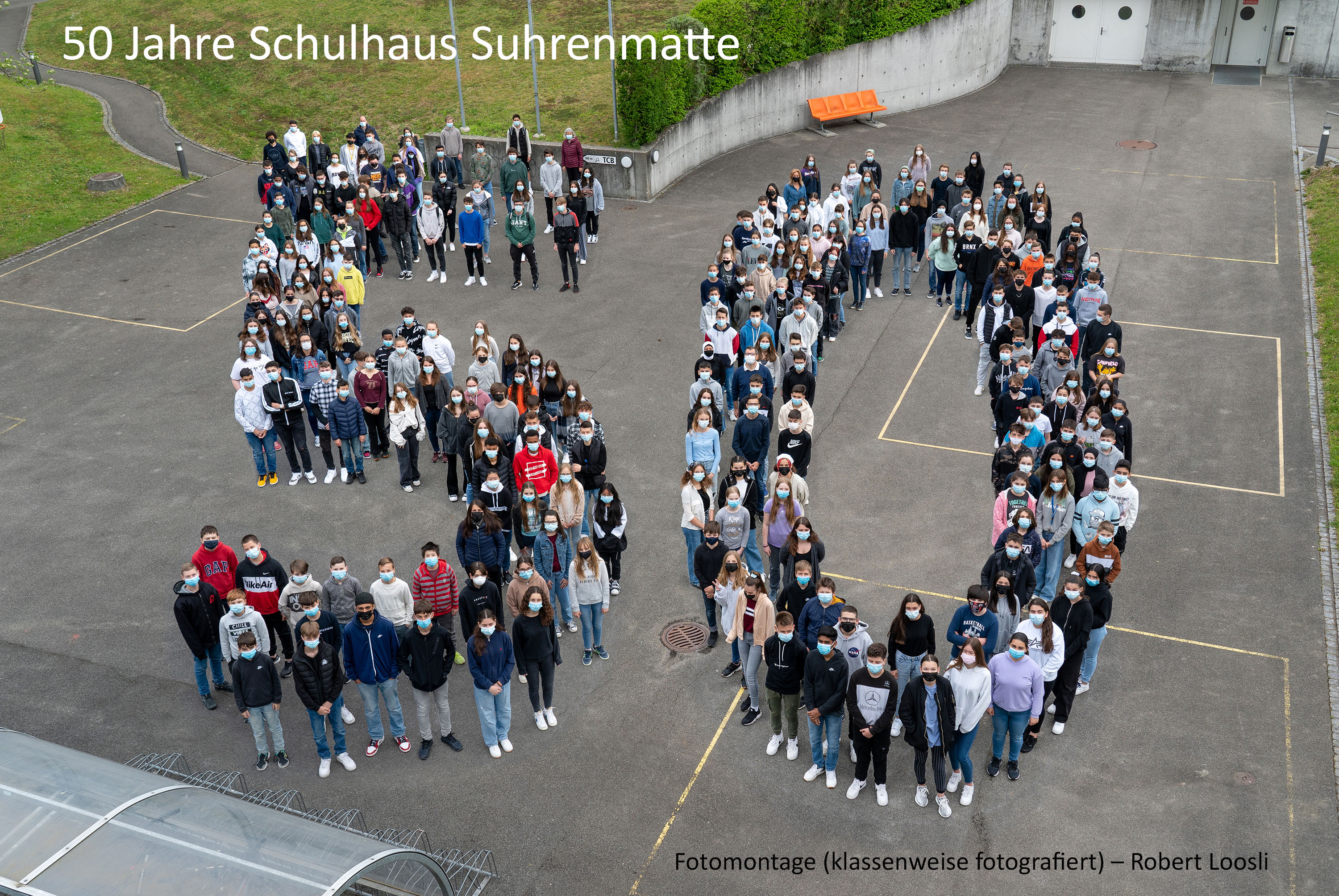 Das Schulhaus Suhrenmatte feiert seinen 50. Geburtstag! Zu diesem Anlass hat Robert Loosli mit der Hilfe von Werner Schenker ein tolles Wimmelbild von allen Schülern unseres Schulhauses erstellt - coronakonform natürlich!