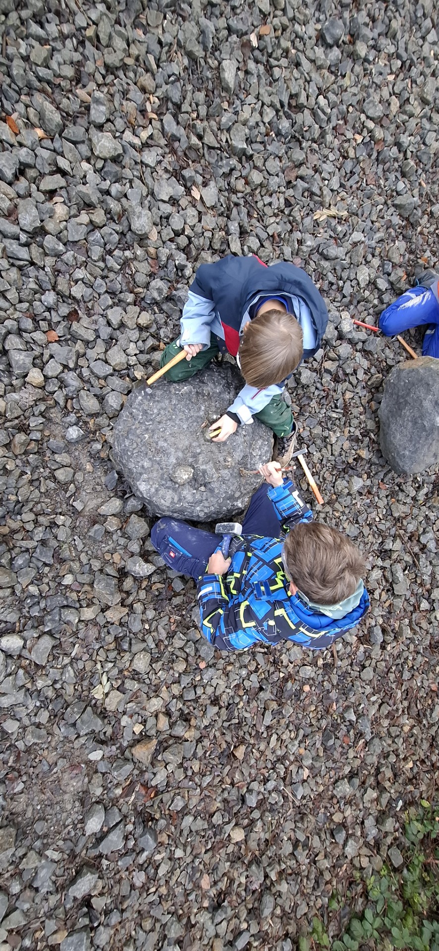 In NMG haben wir das Thema Dinosaurier mit der 3. Klasse behandelt. Wir arbeiteten relativ frei mit Werkstattunterricht. Da mussten Dinge erforscht, gelesen, gebastelt und gebaut werden. Wir haben sogar Dinosaurier lebensgross auf unseren Pausenplatz gemalt und waren auf dem Klopfplatz Frick um Fossilien zu suchen!