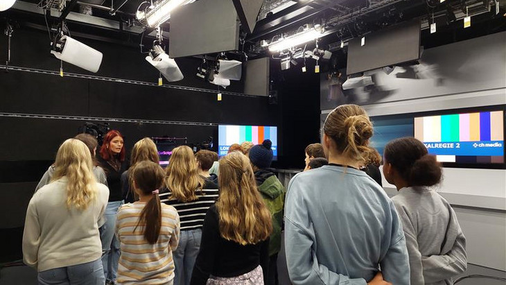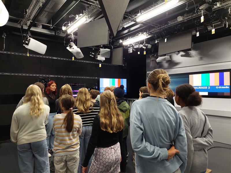 Am Dienstag, 23. September 2025 hatte die Klasse 6b die Gelegenheit, Radio Argovia und Tele M1 aus nächster Nähe kennenzulernen. Gleich zu Beginn durften sie das Fernsehstudio von Tele M1 bestaunen und im grellen Scheinwerferlicht ein tolles Klassenfoto machen.