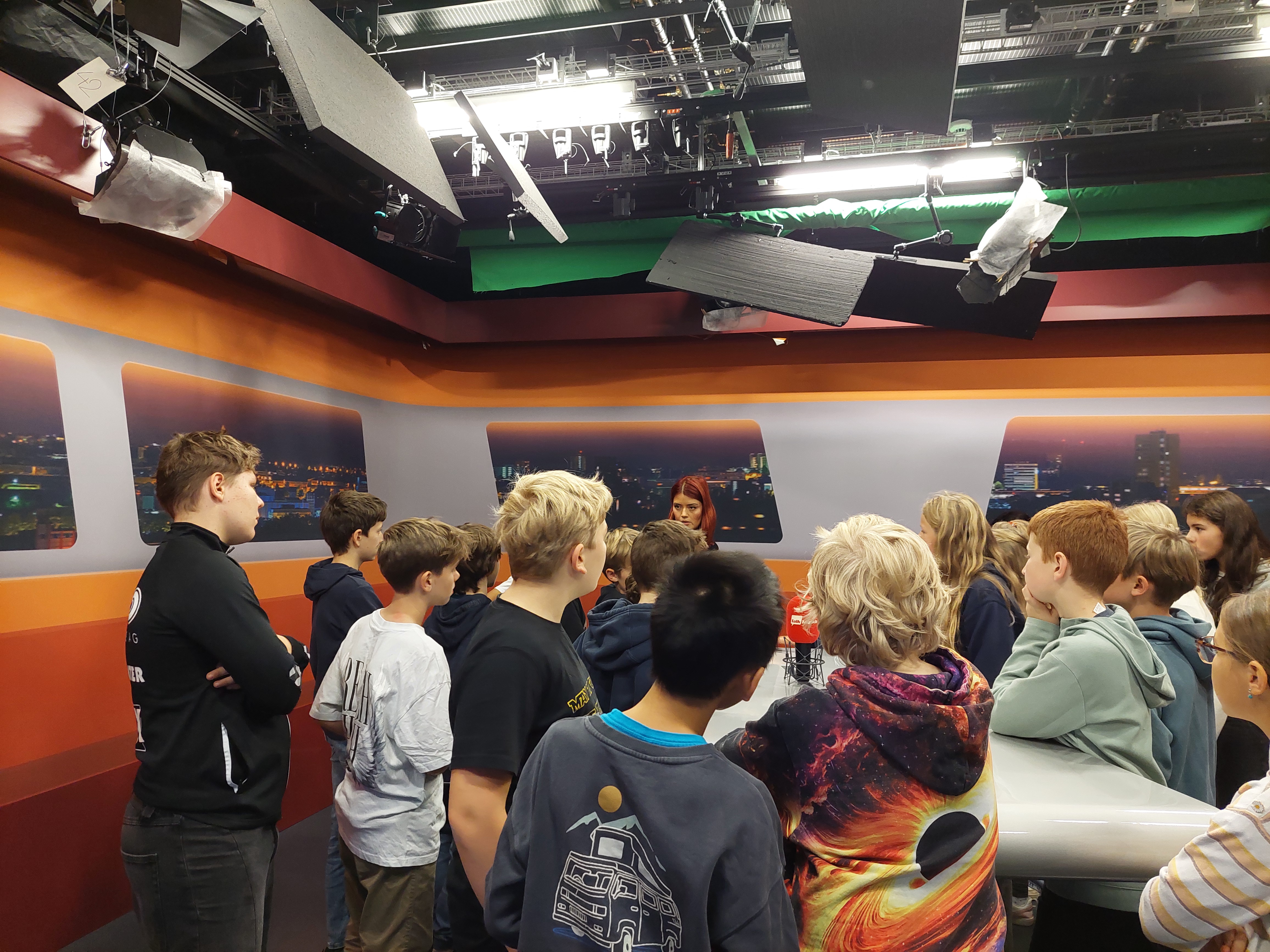 Mikrofone, Kameras, Scheinwerfer und jede Menge spannende Fragen – die Klasse 6b durfte einen ganz besonderen Blick hinter die Kulissen der Medienwelt werfen.