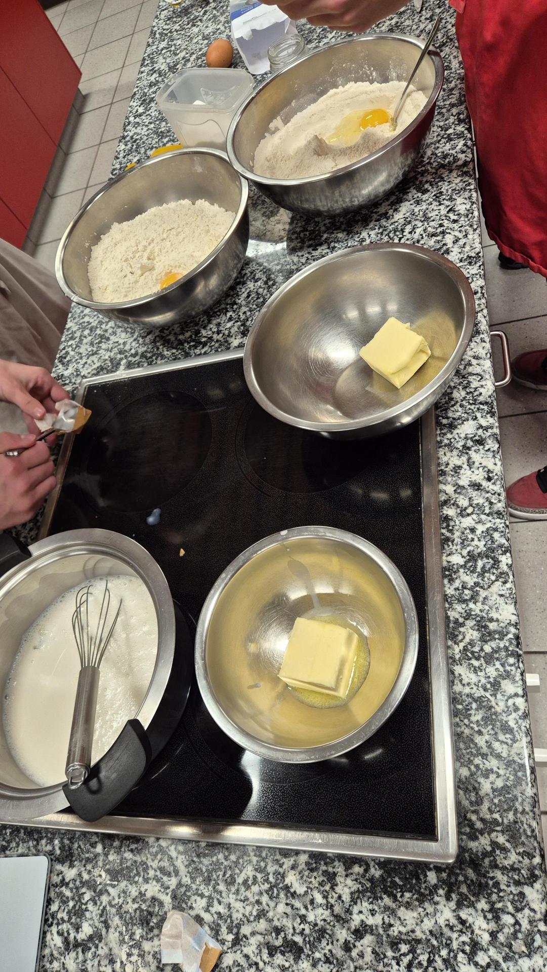Noch bevor der Tag begann, wurde unsere Schule lebendig: Um 2:00 Uhr startete die Klasse S3B mit dem Backen von frischem Zopf für das gemeinsame Frühstück.