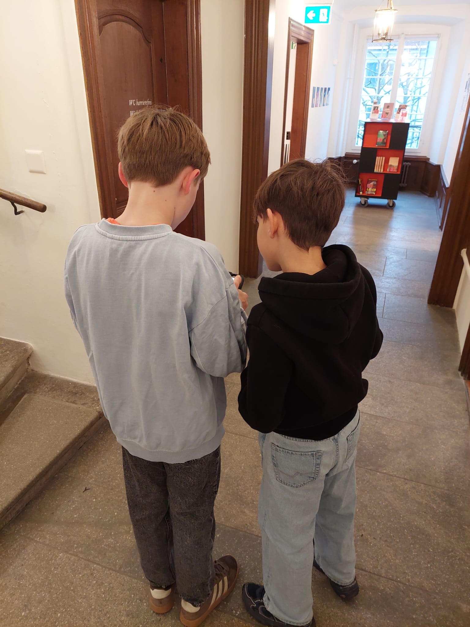 Ausgerüstet mit einem iPad machten sich die Schülerinnen und Schüler in Zweiergruppen auf den Weg durch alle vier Stockwerke, um Hinweise zu finden, Rätsel zu lösen und den Schlüssel aufzuspüren.