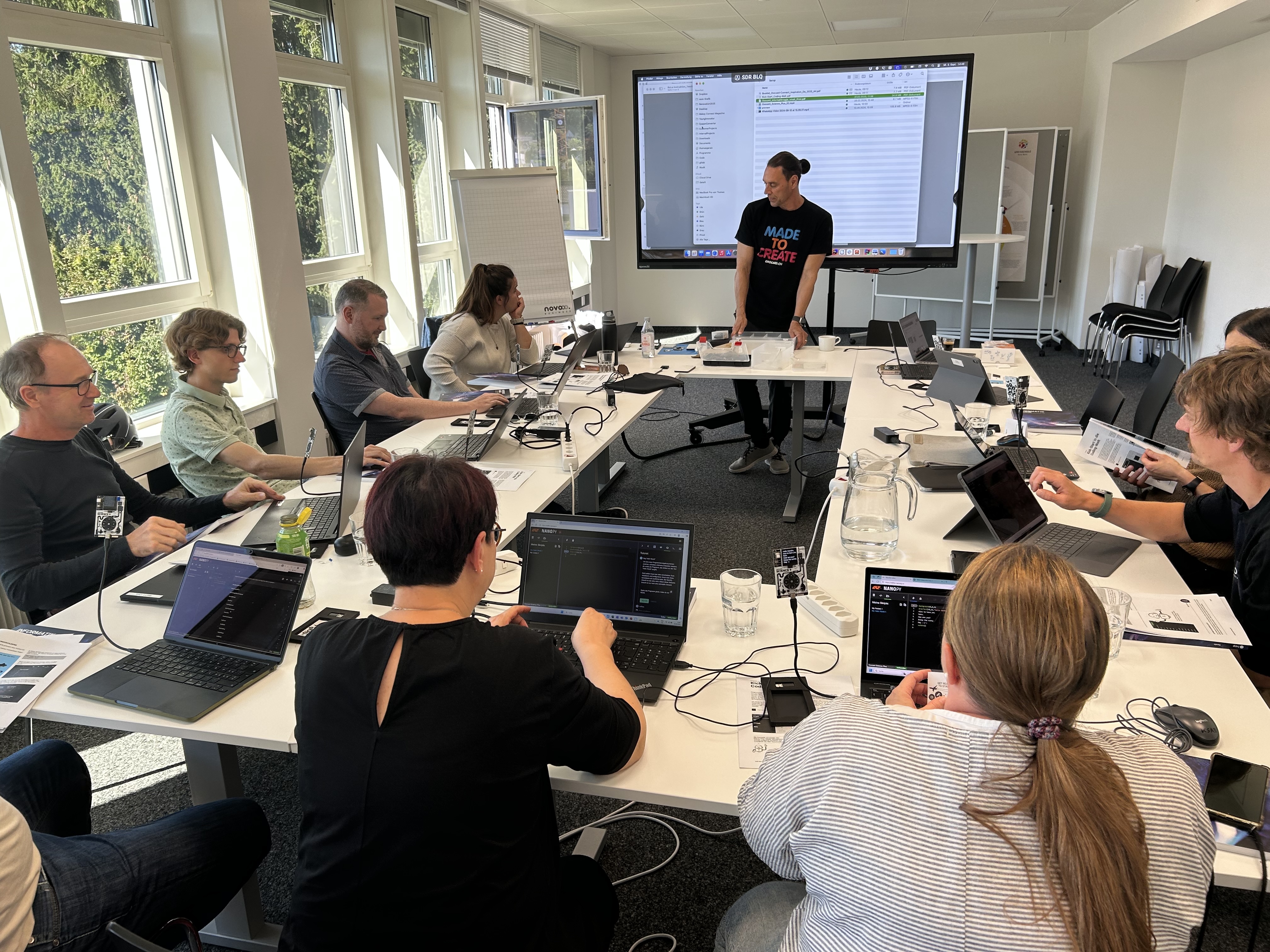 Am Mittwoch 3.September trafen sich zahlreiche Lehrpersonen zur Weiterbildung für die Oxocard Science. Dieser Microcontroller vereint zahlreiche Sensoren mit einer Programmierumgebung. Die Lehrpersonen konnten erste Erfahrungen mit den Möglichkeiten der Oxocards sammeln und Unterrichtsideen austauschen.