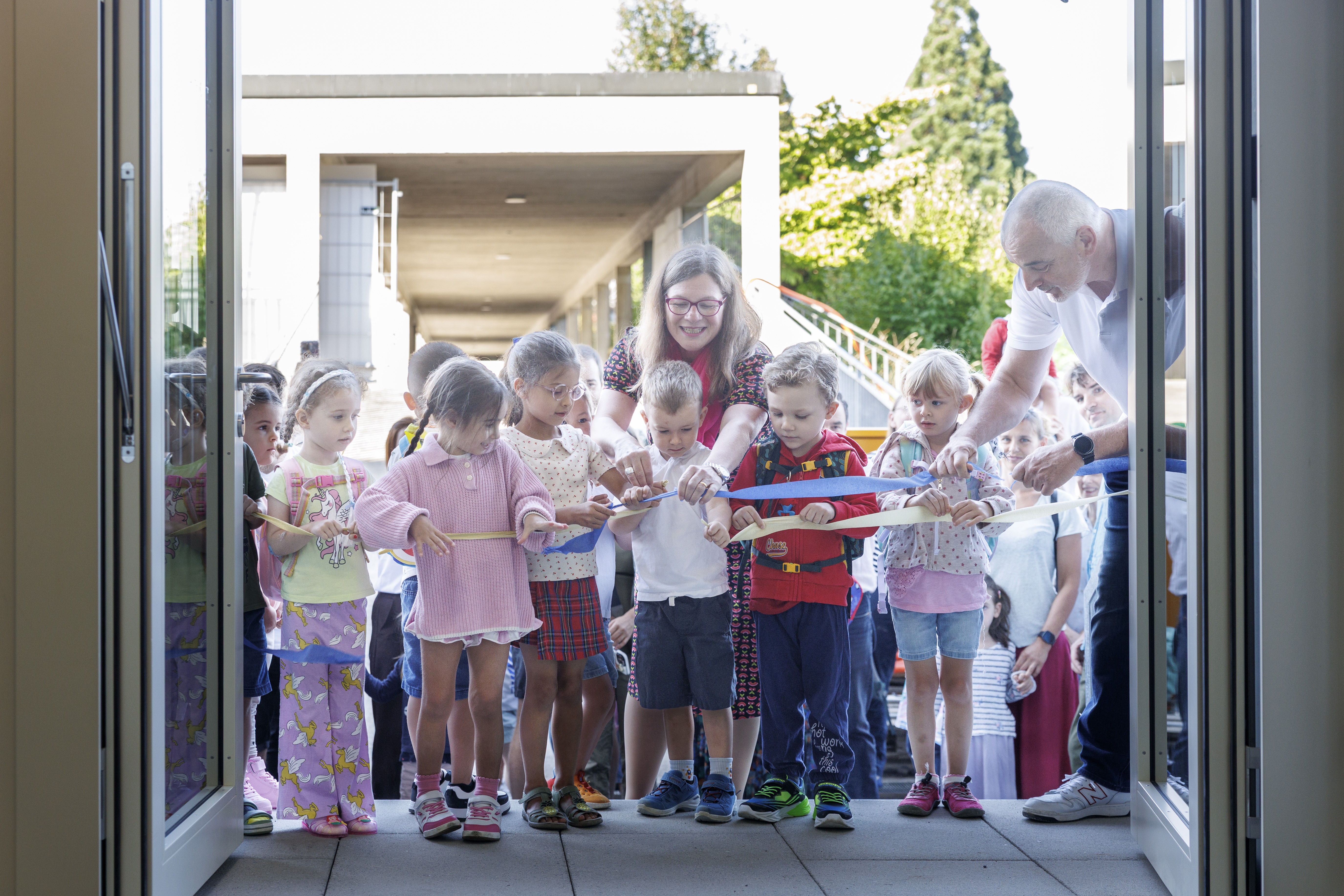 Am 8. August 2025 wurde die neu errichtete Tagesschule feierlich eröffnet. Die Kinder durchtrennten mit Unterstützung von Franziska Graf-Bruppacher, Stadträtin Aarau, und Anton Kleiber, Vizegemeindepräsident Buchs, symbolisch das Band und erhielten erstmals die Gelegenheit, die modernen Räumlichkeiten zu besichtigen.